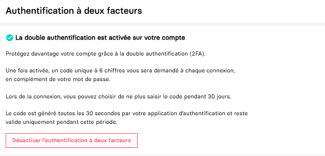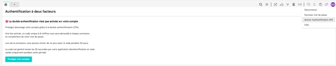 Il est possible d’activer l’authentification à deux facteurs (2FA) :