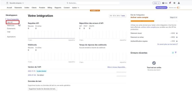Pour pouvoir activer le paiement en ligne et synchroniser vos données il vous faut utiliser des clés API.