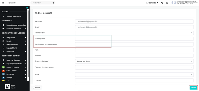Une fois le dossier créé, il ne vous reste plus qu’à communiquer l’identifiant (adresse email) / mot de passe de connexion ainsi que l'URL de la plateforme ( https://app.gestion.myunisoft.fr ) à votre client.