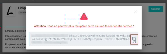 Vous arrivez sur l’écran suivant où il vous sera demandé de copier votre clé API (Token MyUnisoft) :