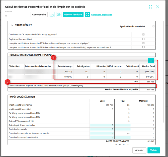 Pour les liasses d'intégration fiscale, le fonctionnement est le même que le calcul d'IS classique, avec un cadre supplémentaire permettant :