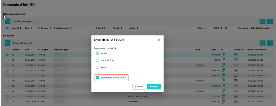 À partir de la fenêtre « Envoi de la PJ à l’OCR », vous avez la possibilité de supprimer le flag «