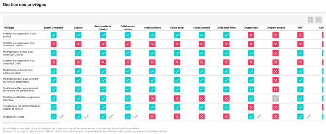Gérer les droits pour un ou plusieurs profils utilisateurs (collaborateur, expert-comptable, client, etc.).