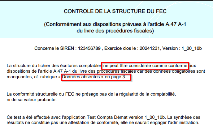 Vous pouvez contrôler la conformité d'un fichier FEC avec l'outil TestComptaDemat mis à disposition sur le site des impôts: