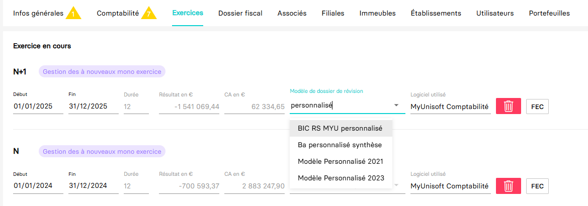 Pour associer un dossier de révision à votre dossier, rendez-vous dans le CRM / exercice du dossier.