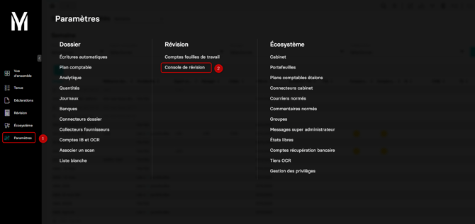 👉 Rendez-vous dans le module Paramètres > Console de Révision de votre interface MyUnisoft.