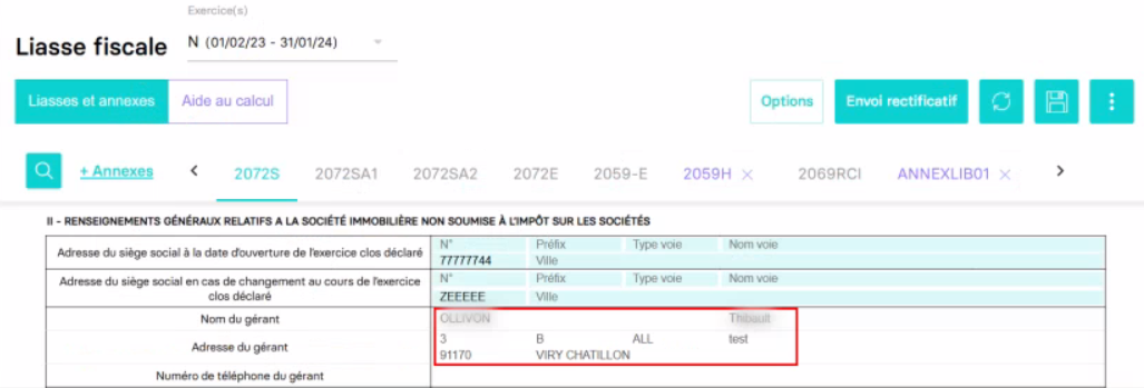 Liasse 2072S SCI : comment remplir automatiquement les informations du Gérant à partir du CRM