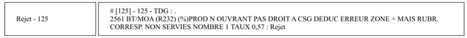 6/ Rejet 125 - Incohérence dans le remplissage du formulaire
