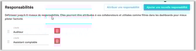 Une nouvelle fonctionnalité « Responsabilités » a été ajoutée sous le menu Paramètres > Ecosystème.